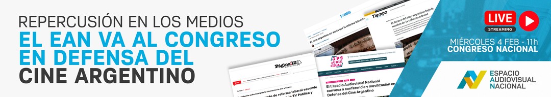 ÁMBITO FINANCIERO https://www.ambito.com/espectaculos/el-cine-argentino-alerta-la-reforma-laboral-que-dice-el-proyecto-n6240794/amp PÁGINA 12 https://www.pagina12.com.ar/2026/02/03/por-que-el-proyecto-de-reforma-laboral-esconde-la-muerte-del-cine-nacional-la-tv-publica-y-radio-nacional/ OTROS CINES https://www.otroscines.com/post/el-espacio-audiovisual-nacional-ean-convoca-a-una-conferencia-y-una-movilizacion-en-defensa-del-cine-argentino ESCRIBIENDO CINE https://www.escribiendocine.com/amp/noticias/2026/01/31/21395-el-espacio-audiovisual-nacional-convoca-a-una-movilizacion-al-congreso-en-defensa-del-financiamiento-del-incaa TIEMPO ARGENTINO https://www.tiempoar.com.ar/ta_article/cine-argentino-reforma-laboral/ GPS AUDIOVISUAL https://gpsaudiovisual.com/2026/01/31/el-espacio-audiovisual-nacional-convoca-a-conferencia-y-movilizacion-en-defensa-del-cine-argentino/ MERCADO...